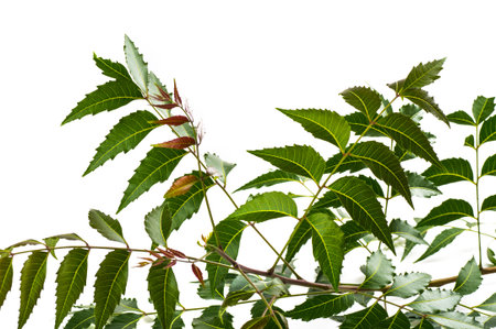 Medicinal neem leaf on white background. Azadirachta indica.