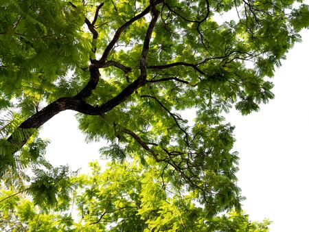 Looking up at the tree on white sky background