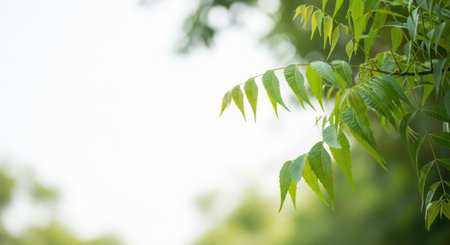 Ayurvedic Neem Leaves Natural Medicinal Properties Outdoor Setting Text Space