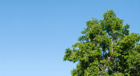 Big tree on the right and cloudless sky with copy space