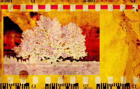 Old camera film strip with photo background