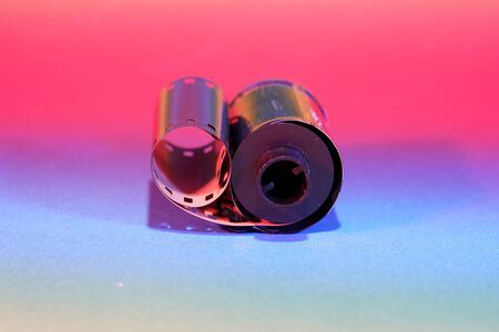 Film of an analogue camera with colorful background photographed in the studio