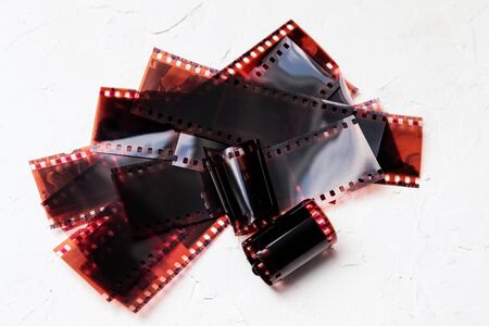 Negative 35 mm film. Rolls of photographic film. Film photo amateur, nostalgic family archive concept
