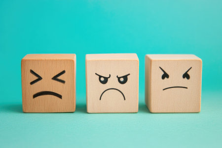 Variety of Emotions Displayed on Wooden Cubes in Pastel Setting