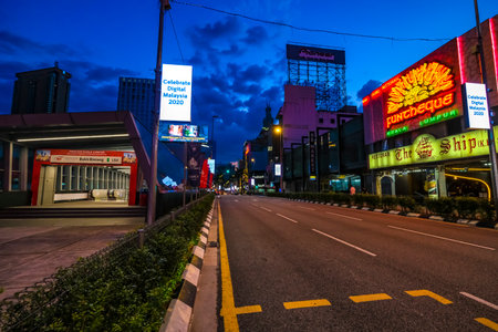 KUALA LUMPUR, MALAYSIA - MARCH 25, 2020: A night view of almost empty Bukit Bintang area as the government imposed a Movement Control Order (MCO) nationwide to combat the COVID-19 outbreak.