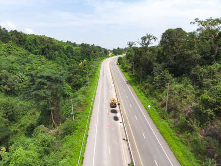 Asphalt road maintenance operator job by worker at Asian countryside