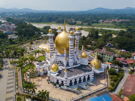 KUALA KANGSAR, MALAYSIA - 5 JULY, 2018 : Aerial view of beautiful mosque (Ubudiah) in Kuala Kangsar, Malaysia