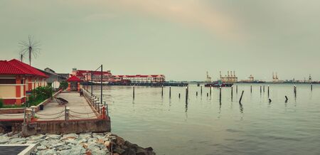 Georgetown coastline at sunset time, Penang, Malaysia. Panorama