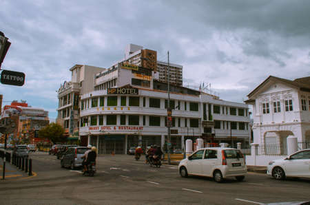 A street in Pulau Pinang with low traffic and overcast weather