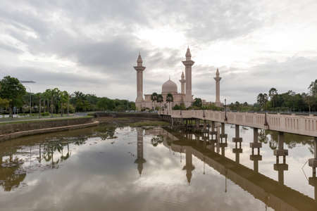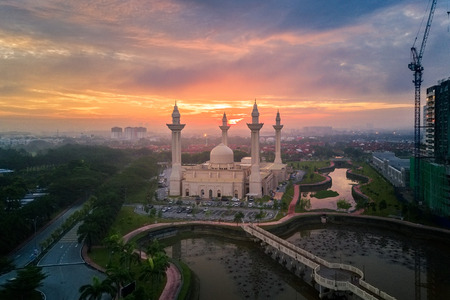 Beautiful view of An-Nur Mosque at Petronas Technology University Seri Iskandar,Perak,Malaysia during sunrise. Soft focus,blur due to long exposure