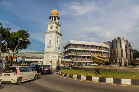 GEORGE TOWN, MALAYSIA - MARCH 20, 2018: Queen Victoria Memorial Clock Tower and Jubilee Clock Tower in George Town, Malaysia