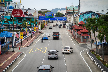 Stunning street view, in the city of Kuang on a tropical island in Malaysia. Langkawi, Malaysia - 06.23.2020