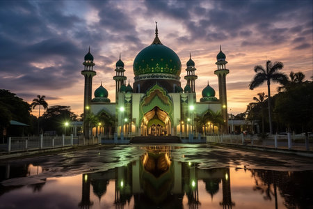 majestic view of a beautiful mosque during sunrise