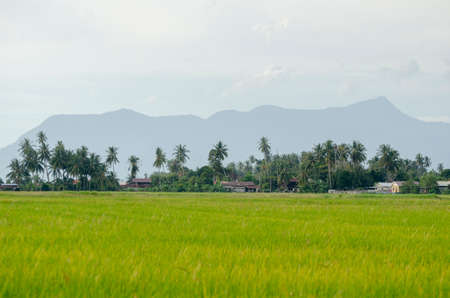 Yellow ripe paddy field. Background is Gunung Jerai.
