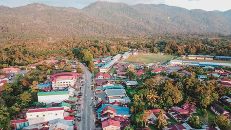 Aerial view of the rural town in Malaysia.