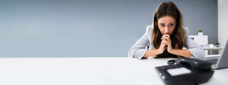 Close-up Of A Stressed Young Businesswoman Looking At Computer Screen