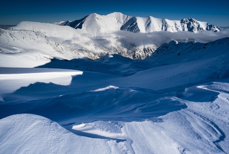 Mountains winter scenery in white and blue