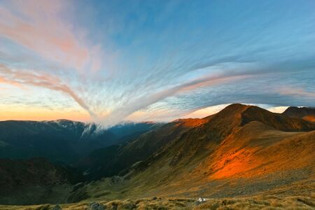 Sunset, mountain landscape in the Carpathian Mountains, Fagaras, Romania, outdoors