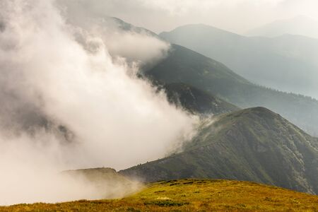 Carpathian mountains in fog. Ukraine, Carpathians