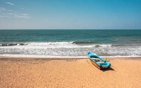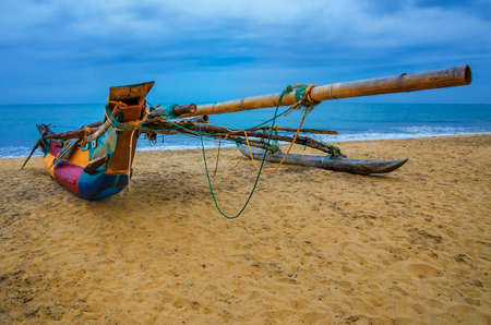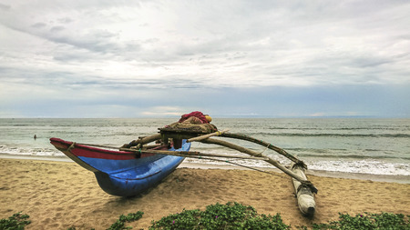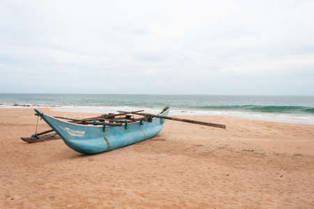Traditional fishing boat on the coastline sand Beach, Sri Lanka