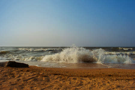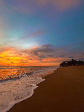 Peaceful view of ocean waves on the shore of Sri Lanka