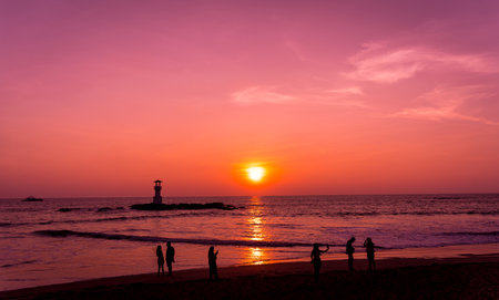 Sunrise time during traveling for refreshing mind and soul apart from fun to the seashore Beach around Asia, India. Odisa, India, very popular in eastern India.PURI, FEBRUARY 2020.