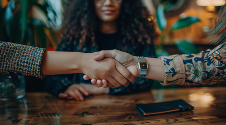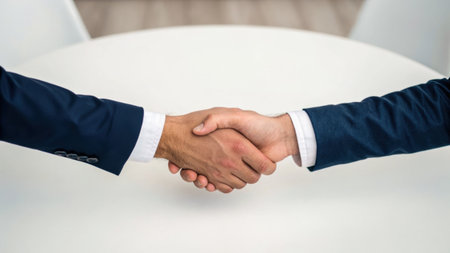 Close-up of a handshake between two business partners, symbolizing trust, partnership, and successful agreements. Ideal for themes of teamwork, business deals, and cooperation.