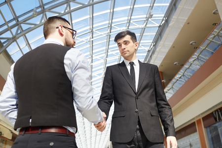 Two business men going to make handshake