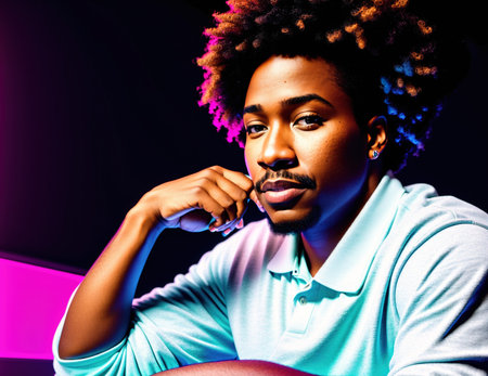 Adult Black Man with Brown Curly Hair neon style Illustration.