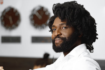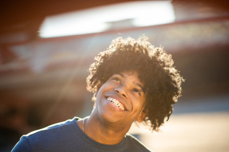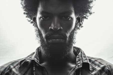 Close-up portrait of african american man in sunny summer evening