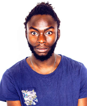 young handsome afro american boy stylish hipster gesturing emotional isolated on white background smiling