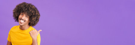 Young thrilled black man screaming on purple background