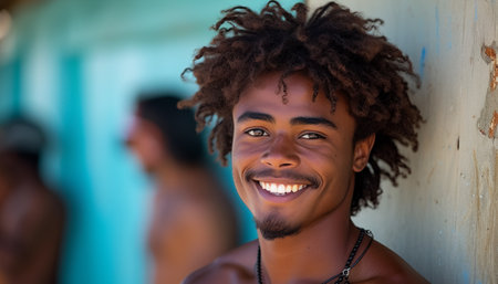 Portrait of a handsome young man with afro hairstyle smiling outdoors