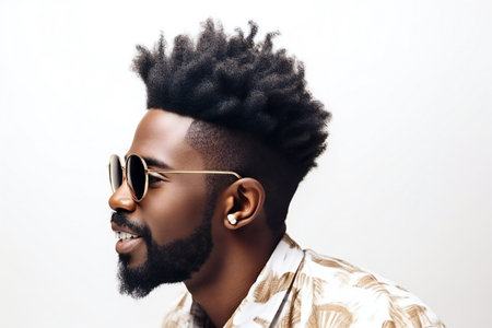 A man with afro hair yelling isolated on white, high quality, high resolution