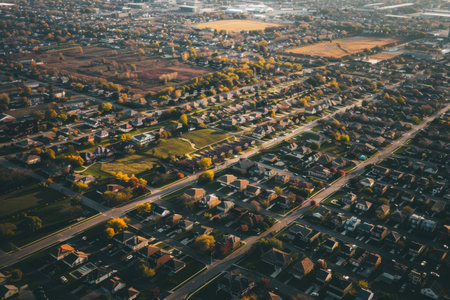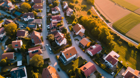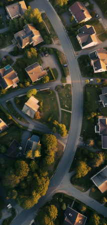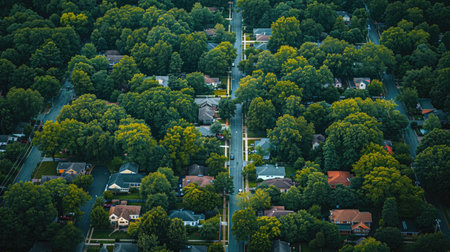 Capturing the Blissful Symmetry: A High Angle Glimpse into Suburban Serenity
