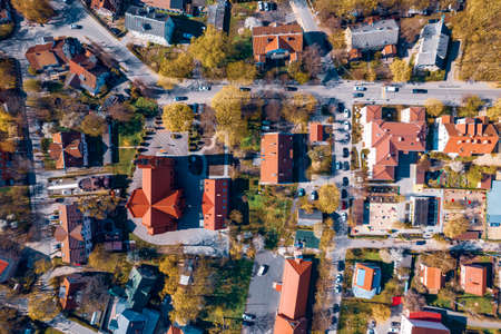 Aerial photo. Townhouse cottages settlement area. Top view from drone.