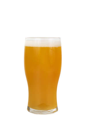 Glass of light beer isolated white background, side view. Holiday for the company, oktoberfest, for the menu of a bar, restaurant, cafe