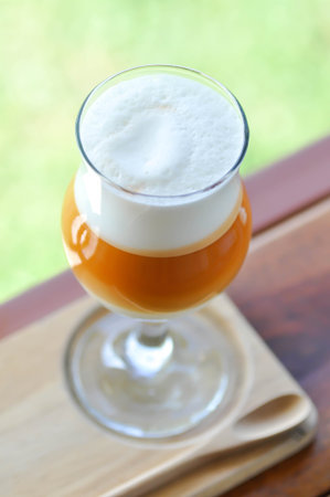 Depicting a image of a bright glass of orange beer, high quality, high resolution