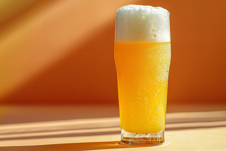 A crisp beer glass showcases golden liquid topped with a frothy foam head, perfect for summer gatherings or casual relaxation moments.