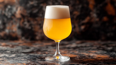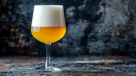 A captivating image of refreshing golden beer with a frothy foam in an elegant glass, set against a dark rustic background perfect for beverage promotion.