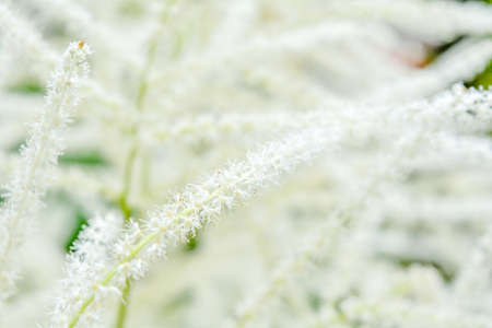 Aruncus dioicus or goat's beard white plant close up with green. Fluffy white flower Aruncus dioicus or Bride's feathers blossom in garden