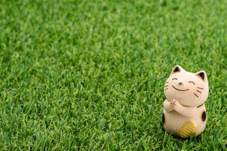 Decorative item - Japanese lucky cat praying on the grass