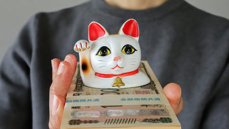 Maneki-neko, the lucky cat and Japanese money.