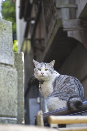 European cat in the old town, Montenegro, recreation and tourism, pet animals.