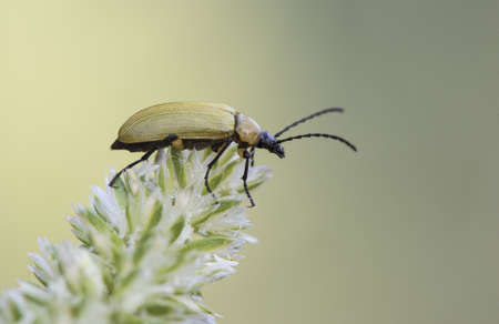 close up of Sermylassa halensis beetle on Perovskia abrotanoides plant