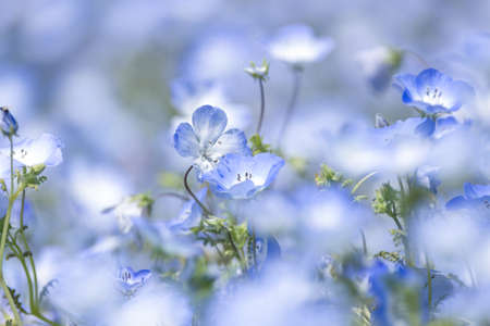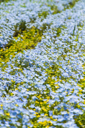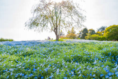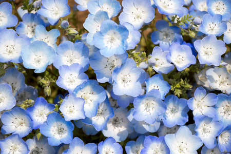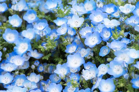 Nemophila blooming in spring in Japan