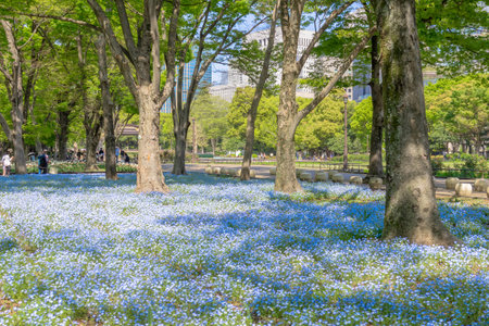 Nemophila flowers in full bloom in Hibiya Park