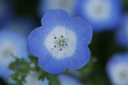 Beautiful blue nemophila in full bloom