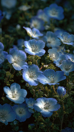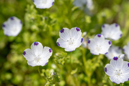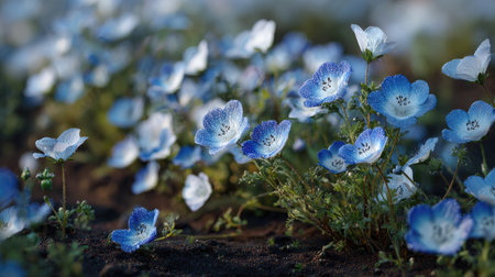 Nemophila flowers blooming in the botanical garden