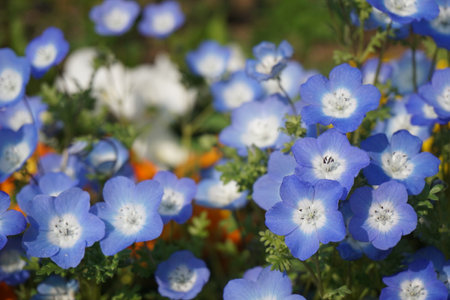 Nemophila flowers in the park.